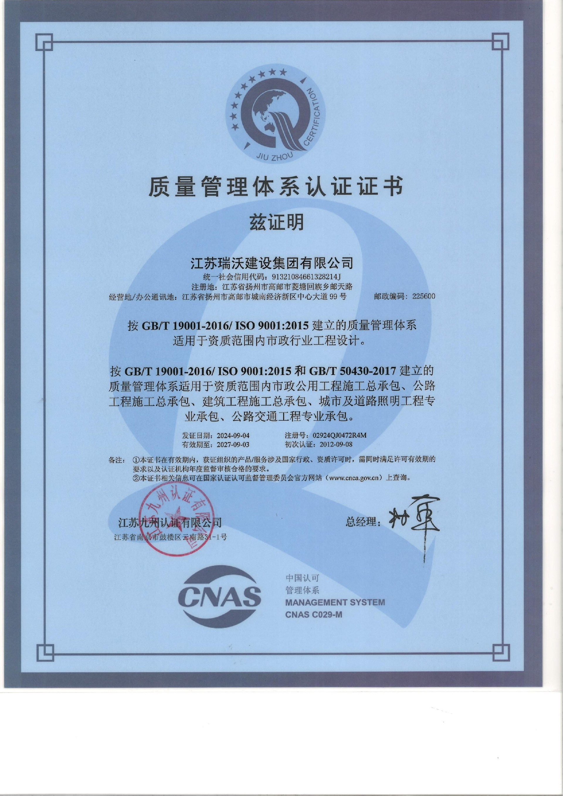 江蘇瑞沃建設(shè)集團(tuán)有限公司成立于2007年,是一家以市政、交通工程建設(shè)為主導(dǎo),集房屋建筑、交通安全設(shè)施、城市道路照明工程、電力工程、隧道工程、航道工程及投融資為一體的綜合性企業(yè)。企業(yè)注冊資本60000萬元,現(xiàn)有各類技術(shù)人員580人,其中中、高級以上人員498人,注冊類人員268人,一、二級建造師166人。公司榮獲“江蘇省建筑業(yè)優(yōu)秀企業(yè)”、“江蘇省五一勞動獎狀”,連續(xù)多年被評為“揚州市先進(jìn)企業(yè)”、“江蘇省建筑業(yè)百強企業(yè)”,連續(xù)八年蟬聯(lián)百強企業(yè)基礎(chǔ)設(shè)施類第一名。